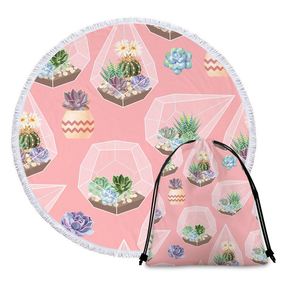 Pink Cactus Print Design Beach Towel in its own Drawstring Bag